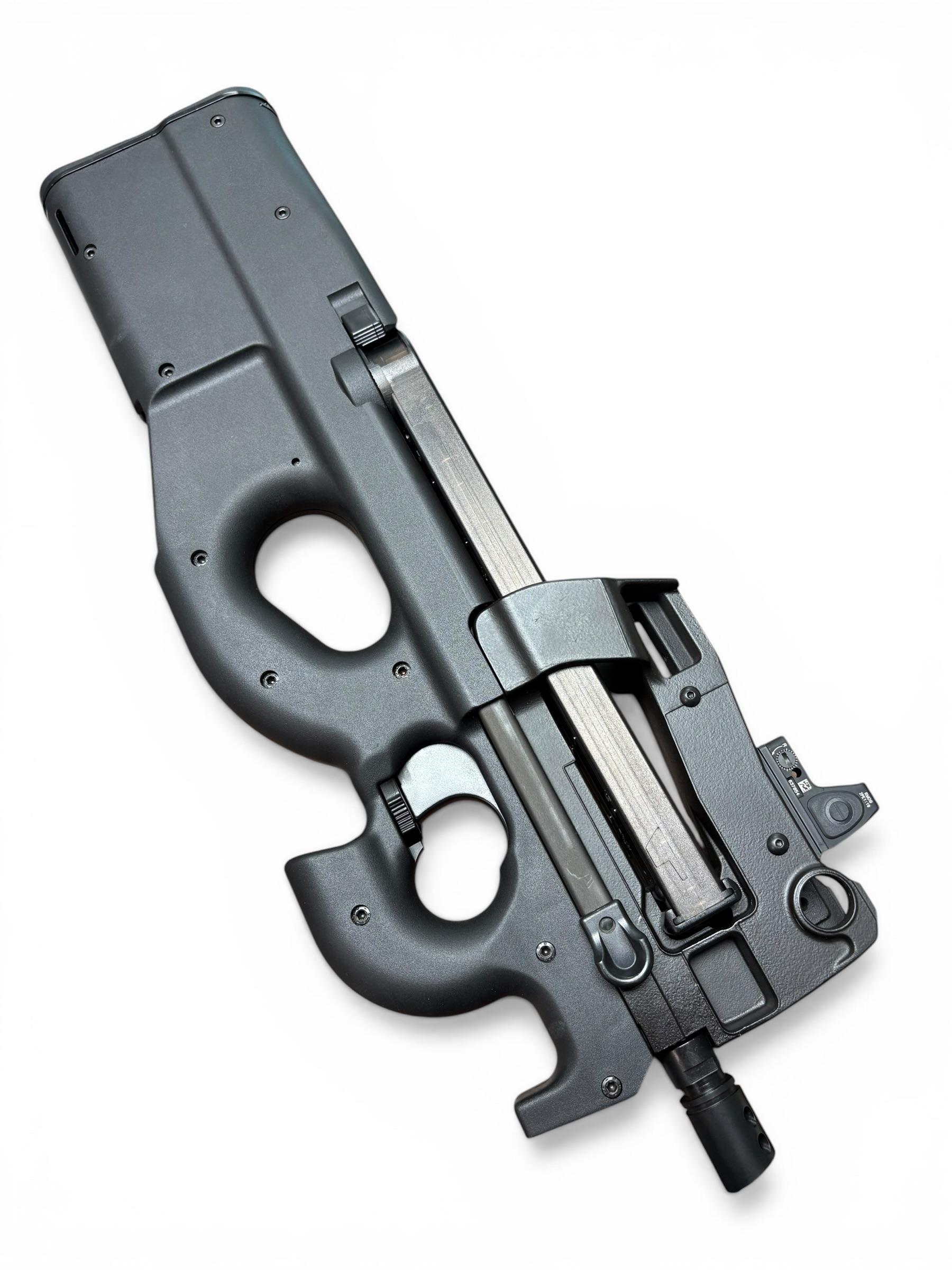 Outfitted with a Trijicon RMR, this setup adds a crisp, reliable aiming solution that enhances target acquisition and keeps you locked on with confidence. Known for its durability and clarity, the RMR pairs seamlessly with the PS90’s fast-handling nature for a highly responsive shooting experience.